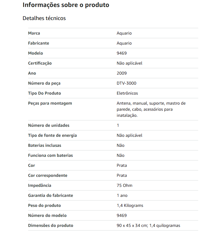 A Aquário é uma marca consolidada no mercado de tecnologia, reconhecida por oferecer soluções inovadoras e de alta qualidade. Ao escolher a Antena Externa Digital 4 em 1 Aquário DTV-3000, você investe em um produto de confiança e eficiência comprovada.
