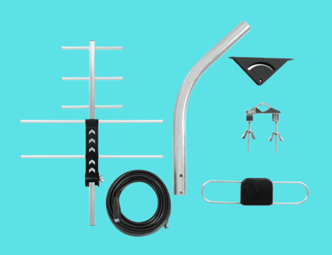 - Facilidade de instalação: Kit completo com antena, mastro, suporte de fixação e cabo coaxial já inclusos